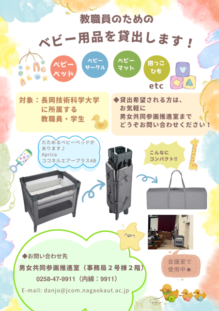 本学の教職員および学生にベビー用品を貸出しています。